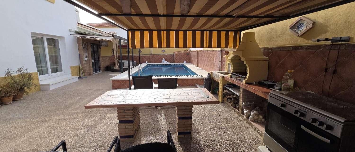 3580-V A la venta esta amplia villa ubicada en una urbanización muy cotizada de Alhaurín de la Torre por su cercanía caminando al centro del pueblo, sobre una parcela de 506m2, consta en planta baja de un amplio salón comedor muy luminoso con chimenea y con acceso a una espectacular cocina moderna completamente equipada a estrenar con comedor y alacena, 1 aseo, una habitación doble y un baño; en la primera planta encontramos 4 habitaciones dobles con armarios empotrados, dos baños completos 1 en suite y una terraza. En la parcela podemos encontrar la piscina, la zona de barbacoa, un techado para varios vehículos y un lavadero exterior. Toda la planta baja ha sido reformada con materiales de alta calidad, los dos baños de arriba reformados con ducha italiana, aire acondicionado en toda la casa frio/calor, ventanas de climalit. La casa se vende completamente pintada en la parte exterior.TIENE LICENCIA TURISTICA